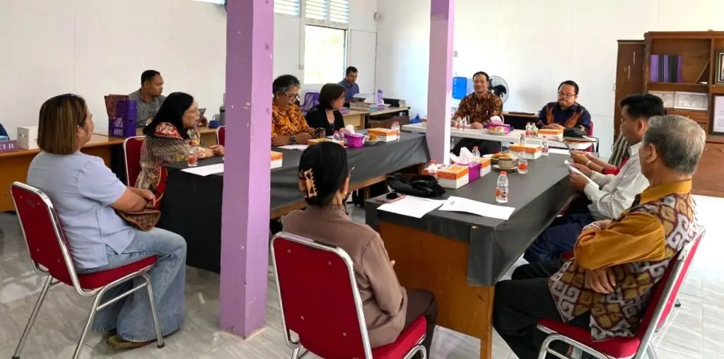 Ketua Umum Sinode GPKB Pdt. Sucipto, M.Pd., bersama Ketua dua Pdt. Alpius dan Sekretaris Umum Sinode GPKB Pdt. Henny Katuuk beserta peserta lainnya menyampaikan perkenalan singkat dan diskusi hangat dalam ruangan kantor STAK-AW.