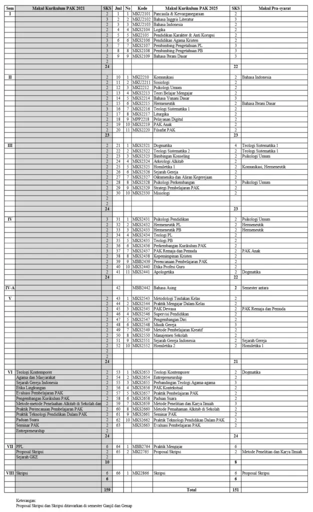 Berikut Mata Kuliah Prodi PAK: